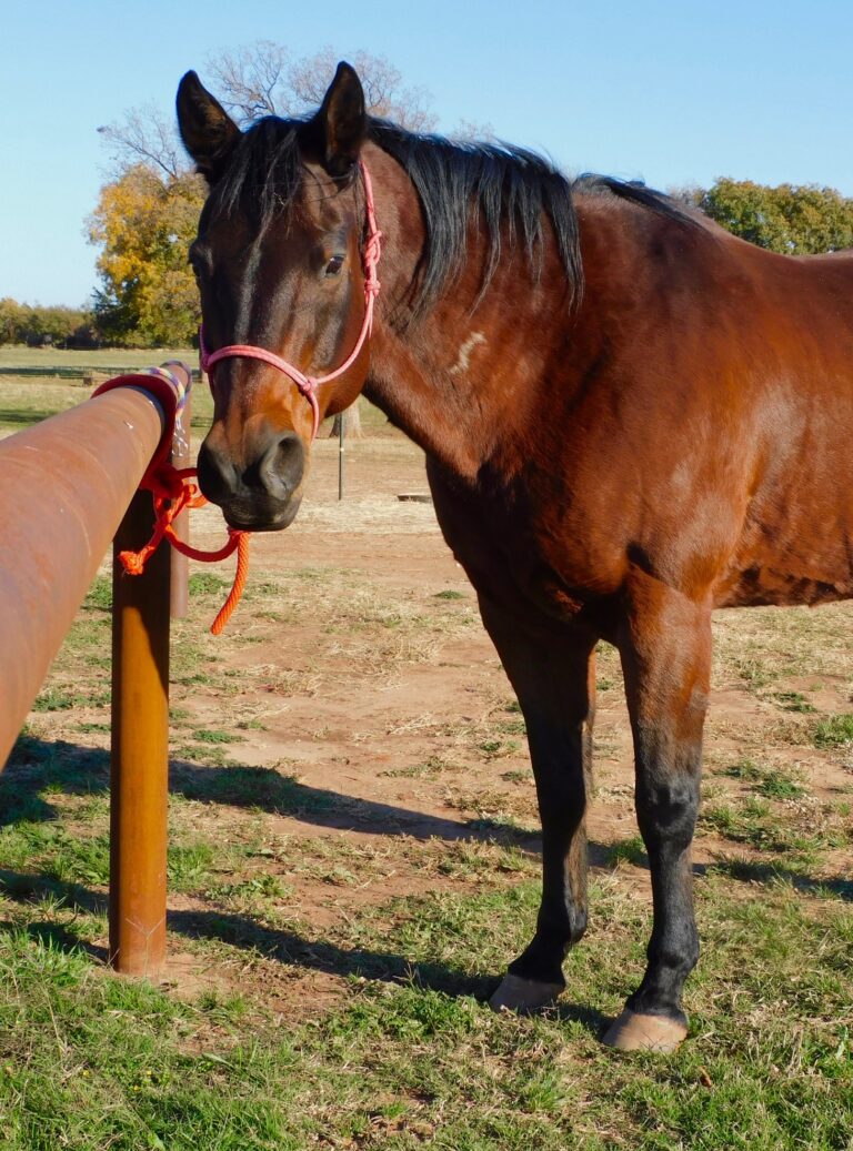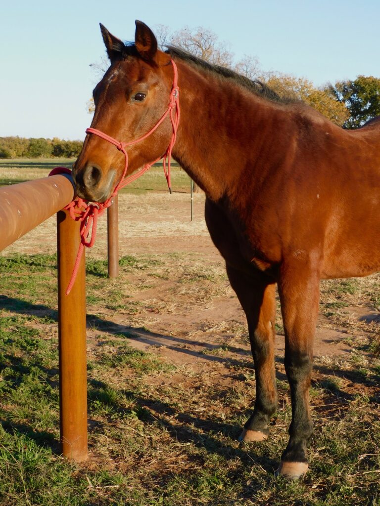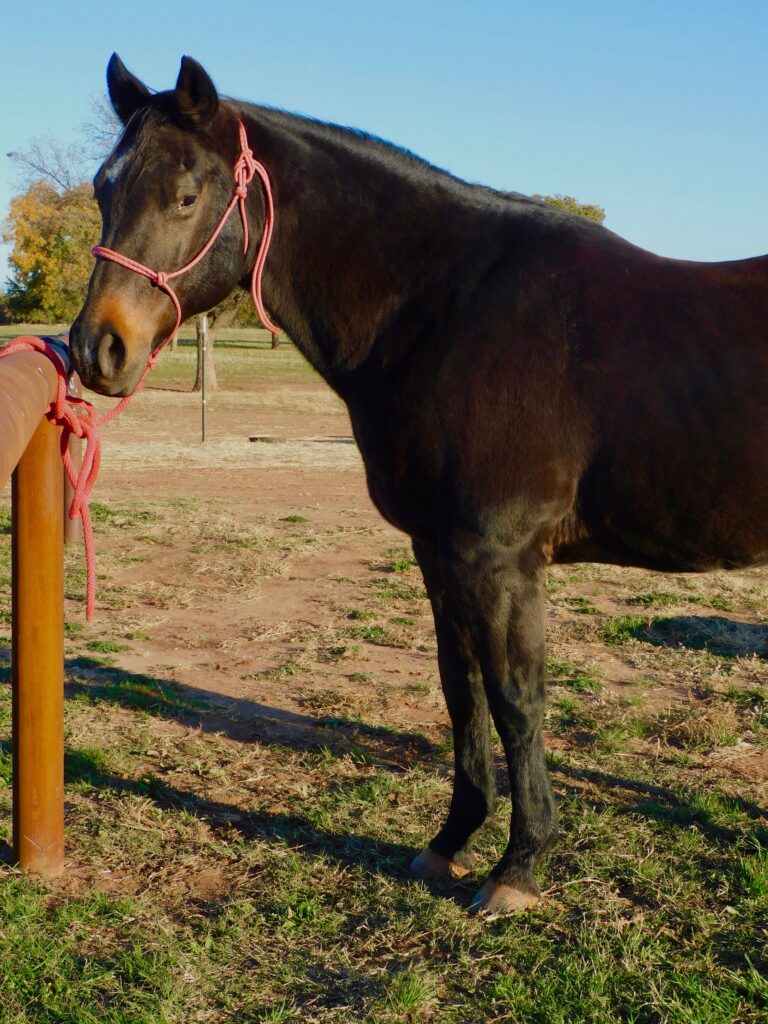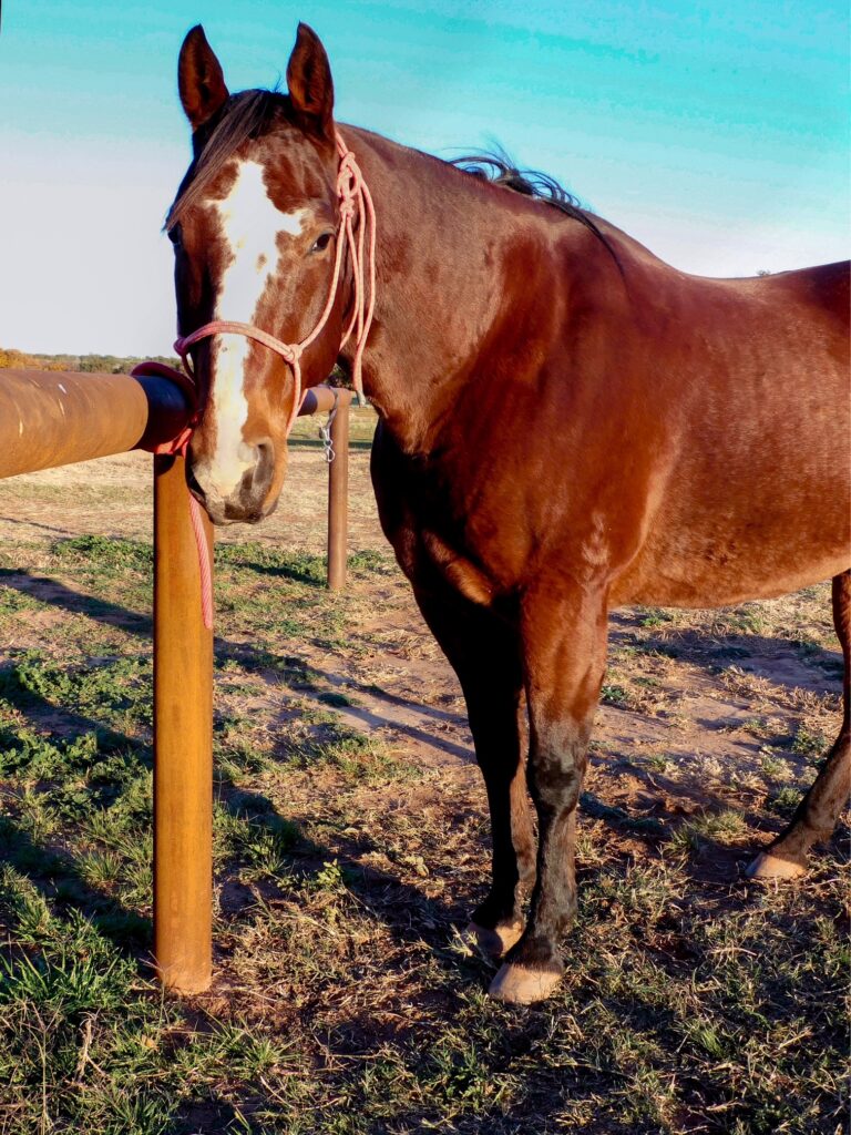 Candy is a Quarter Horse mare who joined our herd in 2023. Born in 1997, she’s taught generations of riders and still insists she’s not a day over 10. Candy often meets us at the gate as if to say, “Is it my turn yet?”—always eager to head to work and share her wisdom. We’re lucky to have this sweet, wise gal in our herd.